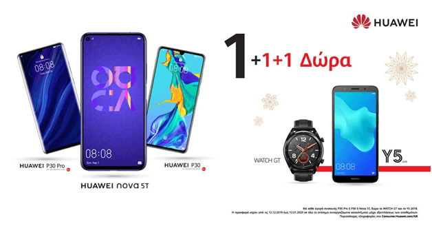 Αυτή είναι προσφορά! Απλά αγοράζεις ένα κορυφαίο smartphone Huawei και λαμβάνεις δώρο ένα απίθανο smartphone και ένα εκπληκτικό smartwatch. Πρόκειται μάλιστα για μία προσφορά που θα τρέξει για έναν ολόκληρο μήνα (από τις 12 Δεκεμβρίου του 2019 έως τις 12 Ιανουαρίου του 2020) και αποτελεί την καλύτερη ιδέα για να γεμίσεις το “καλάθι” των δώρων σου και αυτά τα Χριστούγεννα.