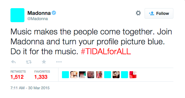 Δεκάδες γνωστά ονόματα της παγκόσμιας μουσικής σκηνής, όπως η Madonna, η Rihanna, η Beyonce, ο Kanye West, οι Arcade Fire, οι Coldplay, οι Daft Punk, η Nicki Minaj και άλλοι “έβαψαν”… τιρκουάζ τις φωτογραφίες προφίλ τους στα social media και το hashtag #TIDALforALL φανέρωνε το λόγο…