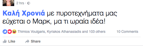 Εσείς απλά δεν έχετε παρά να γράψετε στις δημοσιεύσεις σας φράσεις-κλειδιά (π.χ. “Καλή Χρονιά”, “Καλή Πρωτοχρονιά” ή “Happy New Year”) και αυτόματα θα δείτε να γίνονται μπλε, ώστε, όταν ένας φίλος σας πατήσει πάνω, να δει να εμφανίζονται πυροτεχνήματα στο feed του.