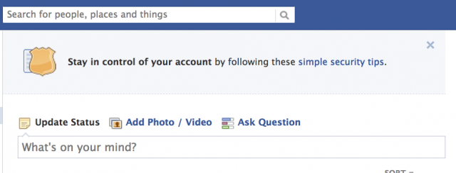 Είναι θέμα ωρών ή ημερών να δούμε όλοι ένα link στην πάνω μεριά της ροής ειδήσεών μας στο Facebook που θα μας παροτρύνει να «Διατηρήσουμε τον έλεγχο του λογαριασμού μας, ακολουθώντας αυτές τις απλές συμβουλές ασφαλείας».