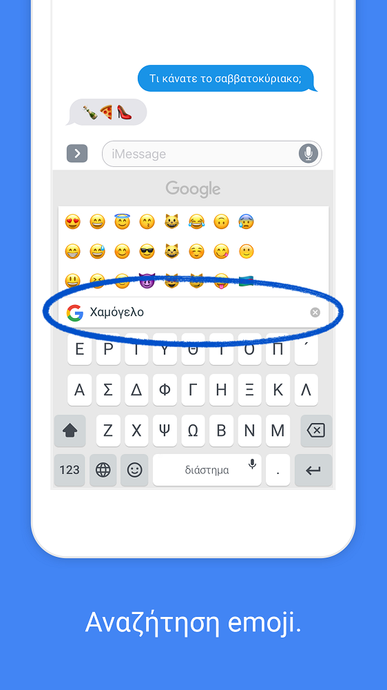 Το Gboard μιλάει «άπταιστα» την παγκόσμια γλώσσα των emoji. Ο χρήστης μπορεί να αναζητήσει και να στείλει όλα τα τελευταία emoji από το iOS 10. 👏🕴 💁