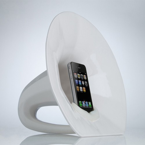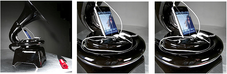 Μπορεί το παλιό πικάπ στο σαλόνι να μην βγάζει ήχο και όλα σου τα τραγούδια να είναι mp3 στο iPhone, όμως μπορείς ακόμα να ακούσεις Lady Gaga απ’ το χωνί του νέου γραμμοφώνου σου! Ο λόγος για το ντελικάτο Phonophone, το νέο ενισχυτή/ ηχείο, του iPhone, που φέρνει τη παλιά αισθητική στη τεχνολογία του έξυπνου τηλεφώνου σου. Το επινόημα του Tristan Zimmerman, μπορεί να παίξει τα playlist του iPhone σου και όλων των συσκευών mp3 που χρησιμοποιείς. Η κεραμεική συσκευή έχει μέγεθος 28x25x21, μπορεί να τετραπλασιάσει την ένταση των ηχείων του iPhone σου και δόσει το βάθος και το ηχόχρωμα του κλασσικού γραμμόφωνου. Η τιμή του προϊόντος ξεκίνησε στην αστρονομική τιμή των $875 αλλά μειώθηκε κατακόρυφα με τη νέα version, αυτή του Phonophone III, που θα βρεις στα $195. Μπορεί να μην ακούσεις το γρατζούνισμα της βελόνας στο βινύλιο, το Phonophone όμως, δεσμεύεται να σε μαγέψει με την αισθητική και τον ήχο του.