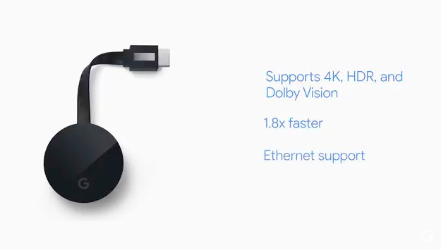 Σύμφωνα με την Google, το Chromecast Ultra είναι 1.8 φορές γρηγορότερο από το τελευταίο μοντέλο της εταιρείας, ενώ προσφέρει και υποστήριξη Ethernet μέσω dongle.