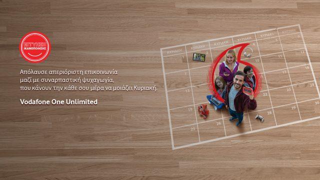 Περισσότερες πληροφορίες για το νέο ολοκληρωμένο σχήμα Vodafone One Unlimited και τα επιπρόσθετα προνόμια στο https://www.vodafone.gr/vodafone-one-unlimited/