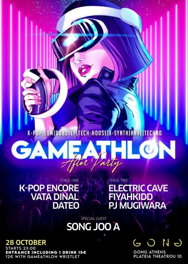 Το Σάββατο, στις 28 Οκτωβρίου θα πραγματοποιηθεί το πρώτο After Party Gameathlon στο GONG Athens (Πλατεία Θεάτρου 10) αμέσως μετά το κλείσιμο των πυλών του Tae Kwon Do στο Gameathlon.