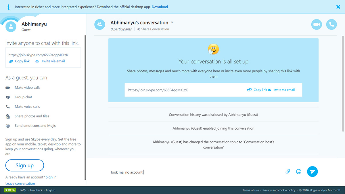 To Skype φέρνει ένα πολυπόθητο για πολλούς χαρακτηριστικό: Το νέο web-based guest interface σας επιτρέπει να πραγματοποιήσετε και να λάβετε κλήσεις, χωρίς την ανάγκη να κατεβάσετε την εφαρμογή στο desktop ή να αποκτήσετε λογαριασμό.