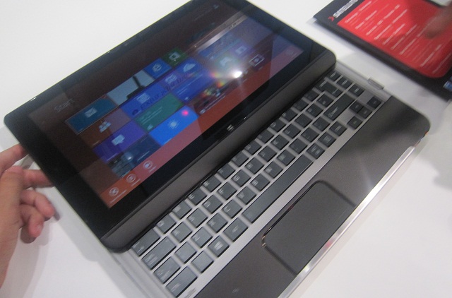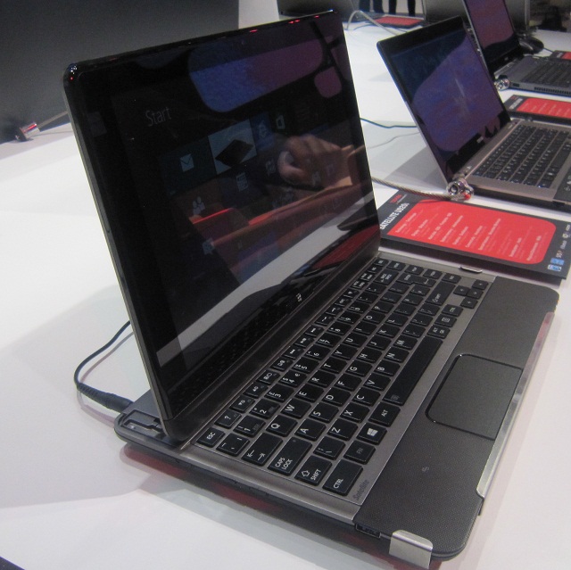 Στην IFA 2012 κάθε εταιρεία που σέβεται τον εαυτό της παρουσιάζει και ένα υβρίδιο ultrabook/tablet με Windows 8. Κάποιες υλοποιήσεις έχουν αφαιρούμενο πληκτρολόγιο, κάποιες άλλες όπως της Sony αλλά και της Toshiba που βλέπουμε εδώ διαθέτουν πληκτρολόγιο που μπορεί να κρυφτεί πίσω απο την οθόνη ώστε να έχουμε τη μετατροπή σε tablet.