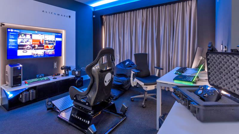 Άλλες παροχές του δωματίου περιλαμβάνουν ένα Xbox Elite, ένα Oculus Rift, ένα σύστημα ήχου surround 5.1 καναλιών και διαδραστικό φωτισμό που συγχρονίζεται με όποιο παιχνίδι παίζετε.