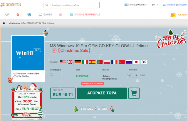 Σίγουρα θα έχετε βαρεθεί να δουλεύετε με πειρατικά “Windows” ή να βλέπετε μια ενοχλητική υπενθύμιση ενεργοποίησης των Windows; Λοιπόν, το Goodoffer24.com έχει εξαιρετικά νέα για εσάς – με σούπερ χριστουγεννιάτικες προσφορές που κάτι μας λέει ότι θα λατρέψετε! Πλέον, αυθεντικά κλειδιά άδειας χρήσης για τα Windows 10 και Windows 11, μπορείτε να τα βρείτε σε τεράστιες εκπτώσεις. Επιπλέον, έχουμε έναν συγκεκριμένο κωδικό προσφοράς που θα κάνει τις τιμές ακόμα πιο ευνοϊκές. Χρειάζεται μόνο να εισαγάγετε τον κωδικό DG35, πριν πραγματοποιήσετε την πληρωμή για να αποκτήσετε την πρόσθετη έκπτωση του 35% σε σύγκριση με τις επισημασμένες τιμές.