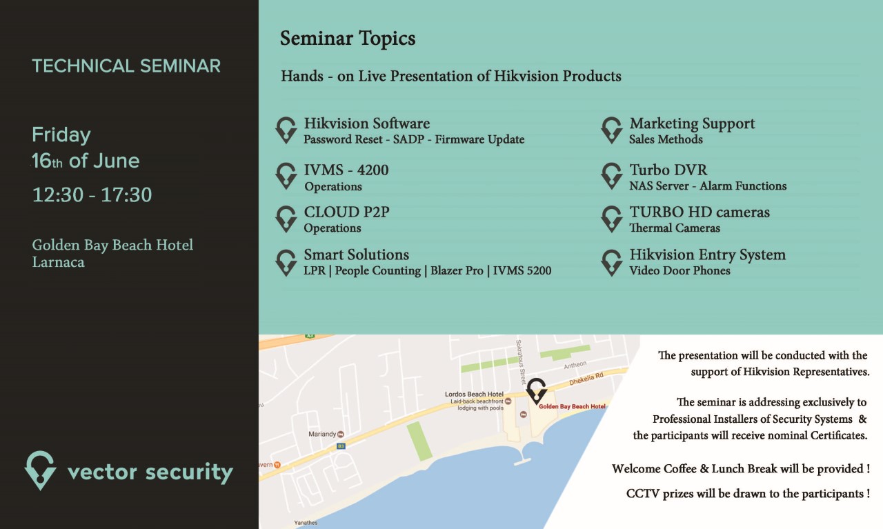 Vector Security: Τεχνικό Σεμινάριο για τα προϊόντα της Hikvision την Παρασκευή 16 Ιουνίου στο ξενοδοχείο Golden Bay στην Λάρνακα