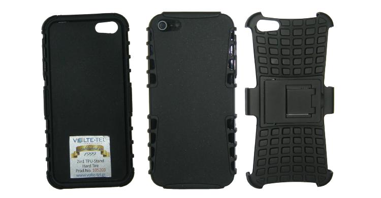 Η 2 IN 1 TPU-STAND TOUGH TIRE της VOLTE-TEL σε μαύρο χρώμα με πρωτότυπο, βιομηχανικό design και κύριο χαρακτηριστικό, την αντιολισθητική της επιφάνεια χάρη στο υλικό κατασκευής της. Το faceplate το οποίο χρησιμοποιείται και ξεχωριστά από το stand, είναι φτιαγμένο από εύκαμπτο TPU υλικό, ενώ το stand είναι από ειδικά επεξεργασμένο σκληρό υλικό για μεγαλύτερη ασφάλεια.