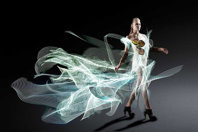Στη συγκεκριμένη περίπτωση, μοντέλα φωτογραφίζονται χωρίς ρούχα, μόνο με φορέματα κατασκευασμένα από φως. Το μόνο πρόβλημα είναι ότι ένα τέτοιο φόρεμα δεν μπορείς να το αγοράσεις ούτε να το φορέσεις εκτός studio. Κατά τα άλλα, η δουλειά του Atton Conrad είναι υπέροχη και αξίζει να την απολαύσει κανείς.