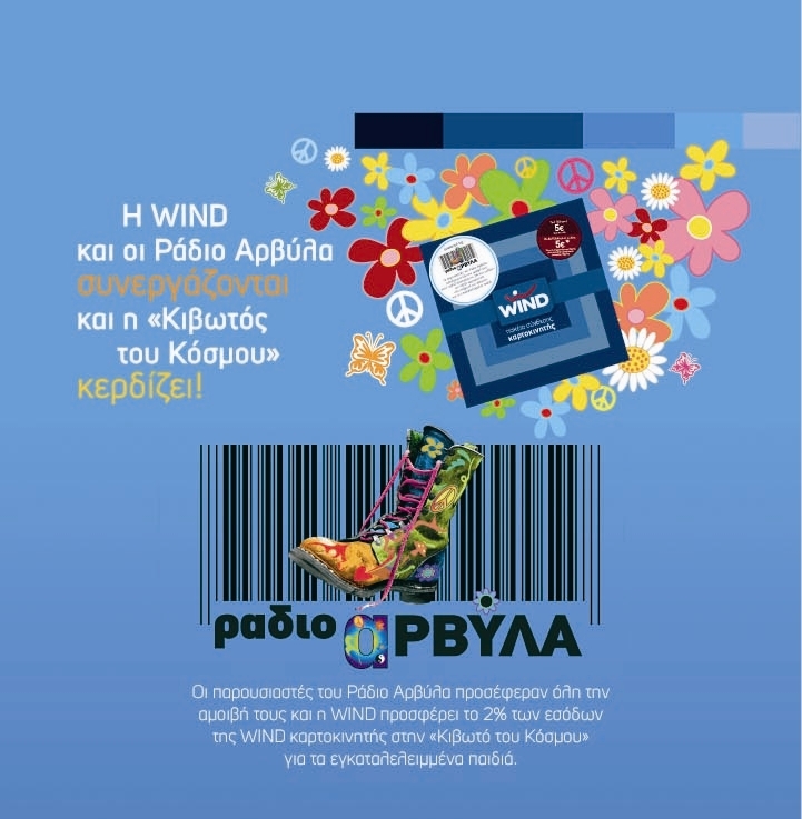 «Είμαστε ιδιαίτερα ευτυχείς που οι συντελεστές του Ράδιο Αρβύλα, αποδέχτηκαν την πρόταση διαφημιστικής συνεργασίας μας» δήλωσε από την πλευρά της WIND Ελλάς ο Διευθυντής Μάρκετινγκ Επικοινωνίας, κ. Ζοζέφ Μεζάν. «Η απόφασή τους να διαθέσουν το σύνολο της αμοιβής τους σε έναν σημαντικό κοινωνικό σκοπό είναι αξιέπαινη αλλά και ουσιαστική την δύσκολη αυτή περίοδο για την ελληνική κοινωνία. Ως WIND θέλουμε να τους πούμε συγχαρητήρια και να συμπορευθούμε σε αυτήν την απόφαση προσφέροντας αντίστοιχα ένα ποσοστό των εσόδων της νέας WIND Καρτοκινητής στην «Κιβωτό του Κόσμου». Το ποσό που θα συγκεντρωθεί θα διατεθεί από την Κιβωτό στη δημιουργία ενός νέου Κέντρου Μέριμνας & Στήριξης Μητέρας και Παιδιού στην Αθήνα. Προσωπικά τους ευχαριστώ για μία συνεργασία που είμαστε βέβαιοι ότι θα είναι απόλυτα επιτυχημένη για την εταιρεία μας και που στέλνει ένα ηχηρό και συγκινητικό κοινωνικό μήνυμα».