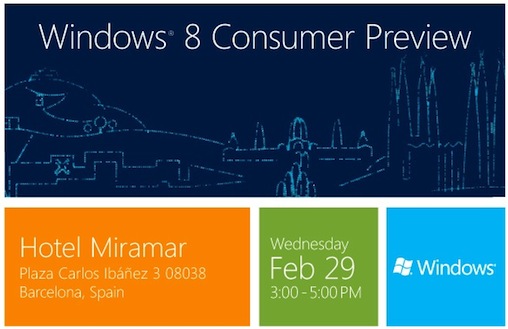 Η επίσημη πρώτη εμφάνιση του λειτουργικού, πριν την επίσημη διάθεσή του στην αγορά, ανακοινώθηκε ότι θα γίνει στις 29 Φεβρουαρίου, στη Βαρκελώνη, το ίδιο χρονικό διάστημα που θα συμβαίνει το Mobile World Congress 2012, αλλά όχι μέσα στα πλαίσια του συνεδρίου. Η Microsoft οργανώνει ξεχωριστό event στην πόλη για να ανακοινώσει το Consumer Preview, όπως έχει αποφασίσει να ονομάσει το “public beta” του λειτουργικού.