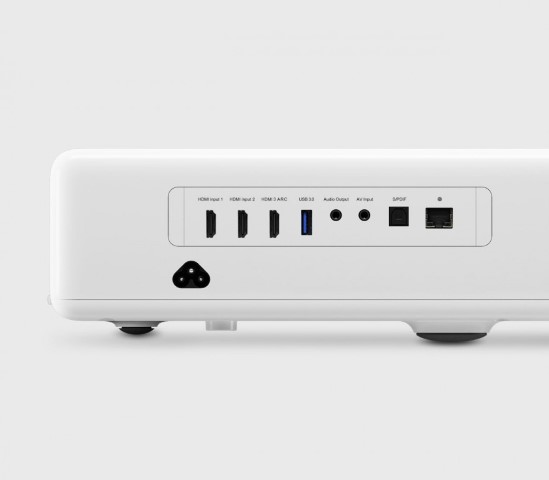 Μία νέα συσκευή της, λοιπόν, είναι ο “Ultra Short Throw” προτζέκτορας, ονόματι Xiaomi Laser Projector. Μια μικρή, επιτραπέζια (ή και επιτοίχια, με λίγη φαντασία) συσκευή που μπορεί να προβάλλει ό,τι θέλετε σε επίπεδες επιφάνειες και μάλιστα τρέχει Android! Μπορεί να τοποθετηθεί σε απόσταση 5-50 εκατοστά από τον τοίχο και να προβάλλει σε αυτόν μια “εικόνα” έως 150 ιντσών σε διαγώνιο! Υποστηρίζει ανάλυση 1080p και έχει hardware της TI (DLP Tech), πιo συγκεκριμένα ένα ALPD 3.0 laser προβολέα. Η φωτεινότητά του μπορεί να αγγίξει τα 5.000 lumens και ο λόγος αντίθεσης το 3.000:1, με άνω του 85% κάλυψη του NTSC φάσματος χρωμάτων.