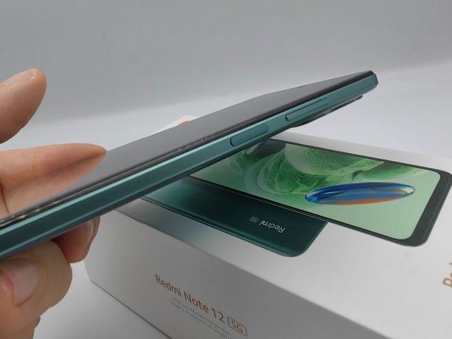 To Note 12 5G κυκλοφορεί σε τρία χρώματα: Frosted Green, Matte Black και Mystique Blue με την ελαφριά κυρτότητα στις πλευρές του να προσφέρει ένα εύκολο και άνετο κράτημα. Το βάρος του ανέχεται στα 188 γραμμάρια, γεγονός που το καθιστά αρκετά ελαφρύ, ενώ με το πάχος του να ανέρχεται στα 8mm αν μη τι άλλο ακολουθεί τα standards της εποχής. Κοιτάζοντας πιο προσεκτικά το συνολικό design του μπορούμε να διακρίνουμε ότι στην δεξιά πλευρά «κατοικούν» τα volume rockers μαζί με το power button (μπορείτε να το πιέσετε εύκολα με τον αντίχειρα σας), το οποίο μάλιστα λειτουργεί και ως αισθητήρας δαχτυλικών αποτυπωμάτων. Δίπλα ακριβώς υπάρχουν τα volume rockers για την αυξομείωση της έντασης του ήχου, ενώ στην αριστερή πλευρά πρόκειται να συναντήσετε το tray για την εισαγωγή της κάρτας SIM και της microSD.