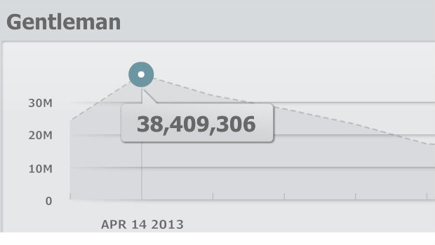 Πέραν του ρεκόρ αυτού, αξίζει να τονίσουμε και την ταχεία άνοδο του Gentleman σε σχέση με το Gangnam Style. Τα πρώτα 100 εκ. views του Gentleman προήλθαν μέσα σε λιγότερο από 4 ημέρες, ενώ το Gangnam Style για τον ίδιο αριθμό views χρειάστηκε σχεδόν 2 μήνες!
