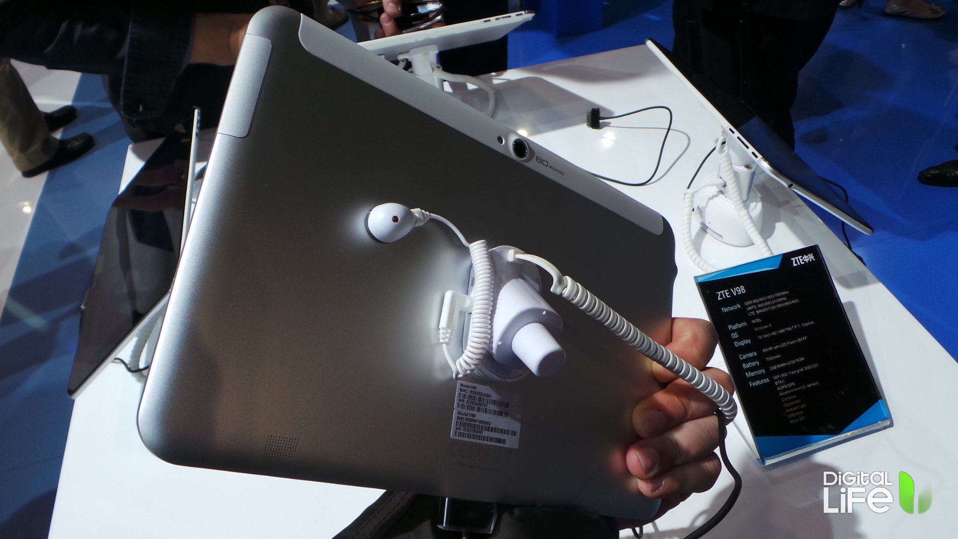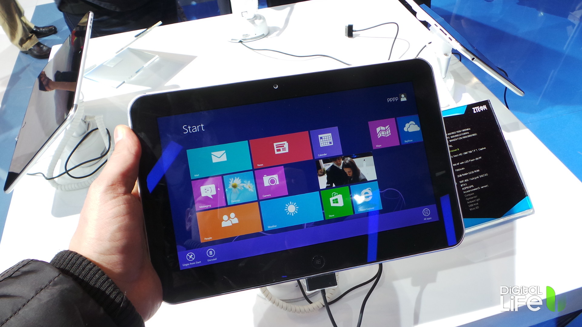 Στο περίπτερο της ZTE, εντοπίσαμε το V98 tablet, το οποίο σε αντίθεση με οτιδήποτε άλλο έχει κυκλοφορήσει η εταιρεία, βασίζεται στο λειτουργικό σύστημα Windows 8. Για να καταστεί κάτι τέτοιο δυνατό, το V98 βασίζεται στην πλατφόρμα της Intel και πιο συγκεκριμένα σε ένα επεξεργαστή Intel Atom “Clovertrail” με συχνότητα λειτουργίας 1,8GHz ο οποίος συνοδεύεται από γραφικά τύπου Intel HD Graphics και 2GB RAM.